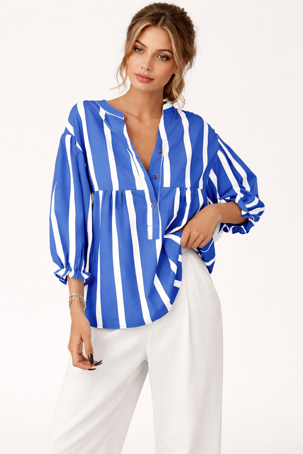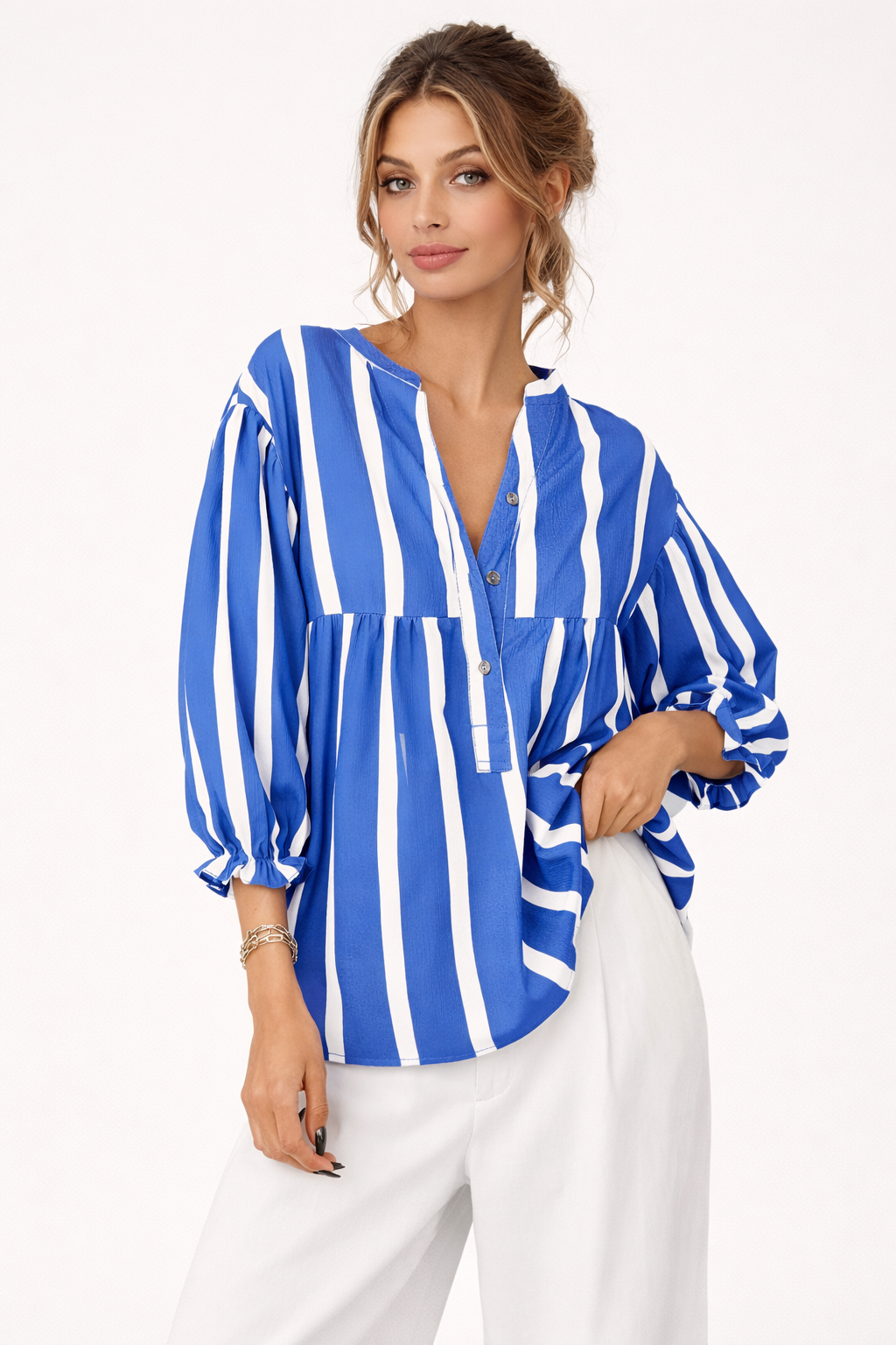Gestreifte Damenbluse mit weiten Ärmeln - Elena