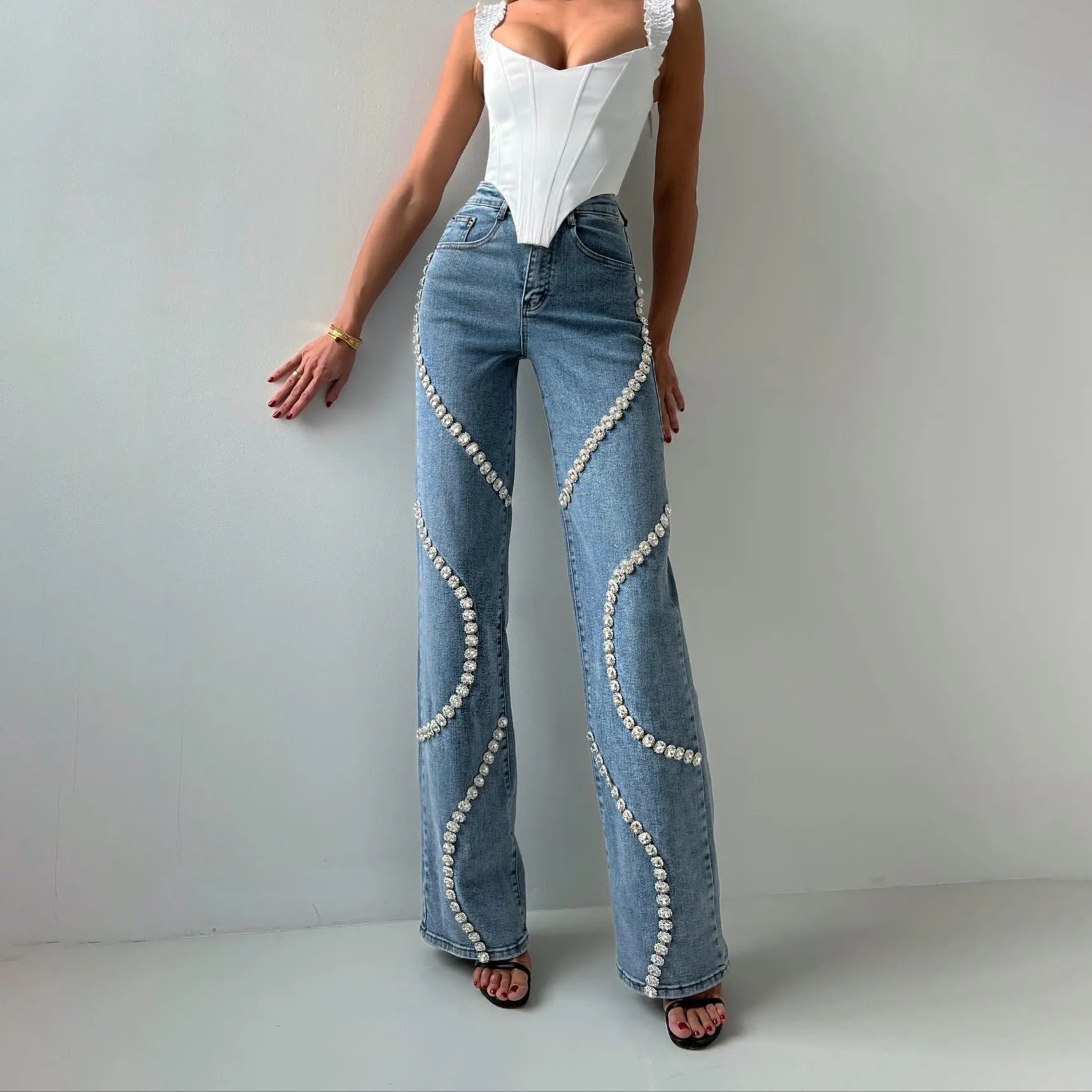 Damenjeans mit dekorativen Strasssteinen gerade geschnitten - Eloísa