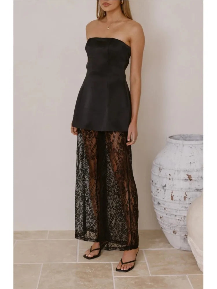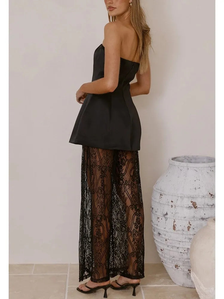 Damenset mit trägerlosem Oberteil und Spitzenhose - Selira