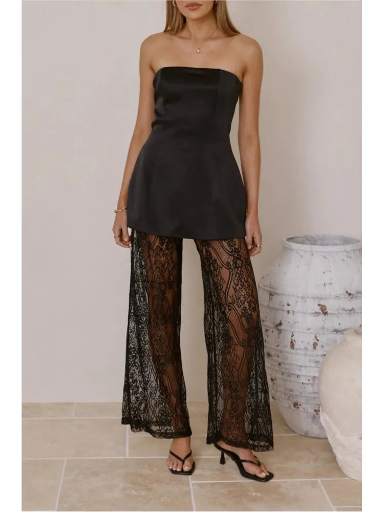 Dieses Damenset kombiniert elegantes Design mit einem modernen Stil für besondereAnlässe . Durch die Kombination des minimalistischen Oberteils mit der Spitzenhose entsteht ein harmonisches Outfit, das durch seine elegante, feminine Ästhetik besticht.