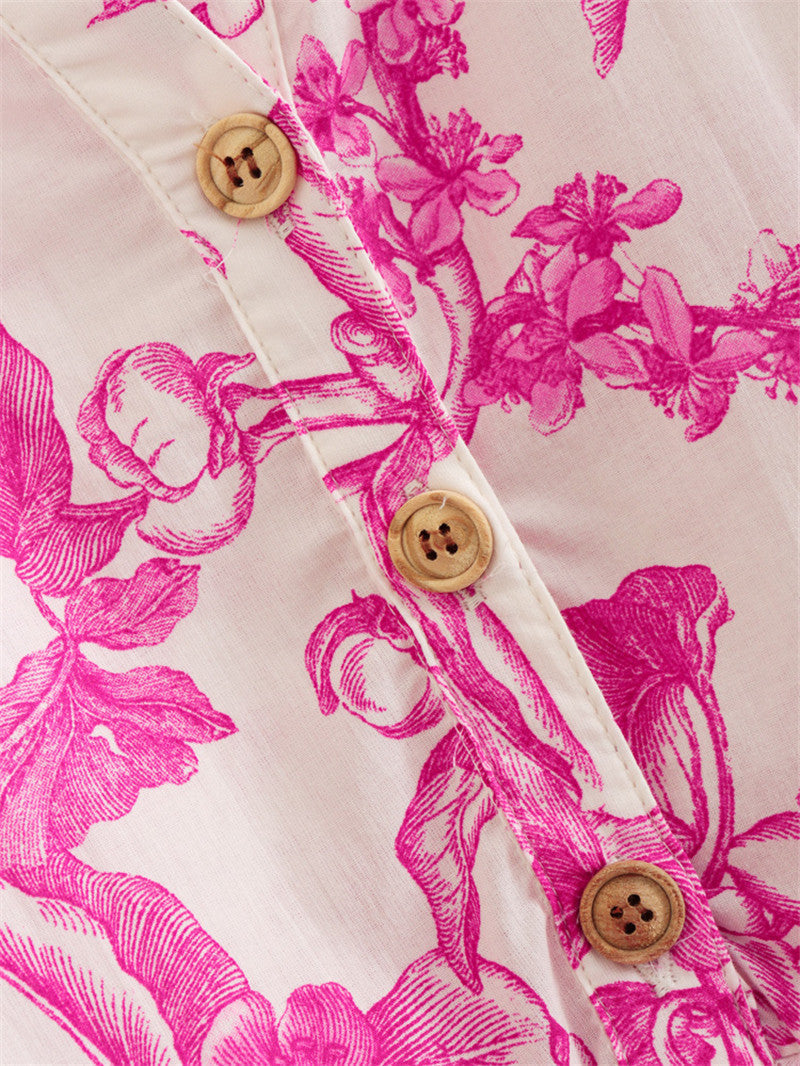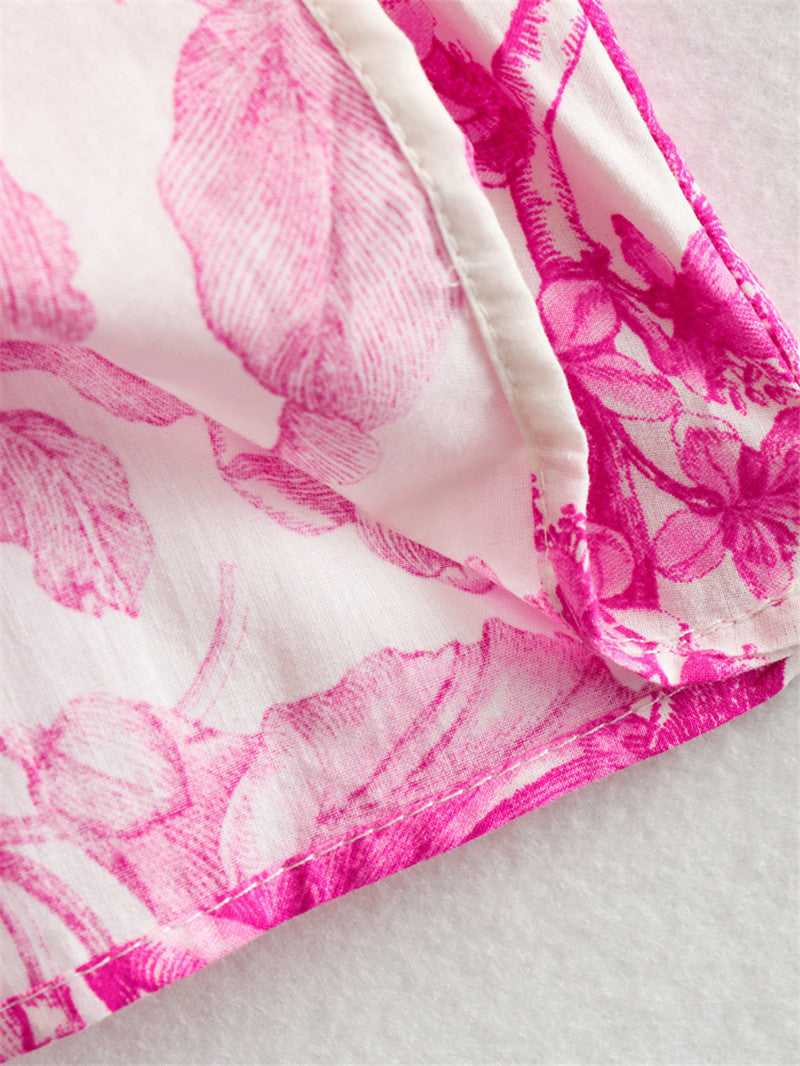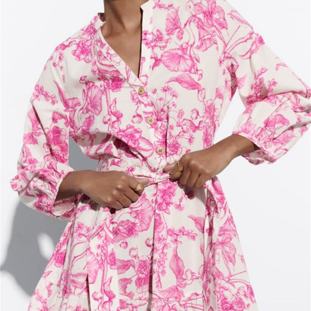 Kurzes geblümtes Kleid mit verstellbarer Taille und weiten Ärmeln - Laurent