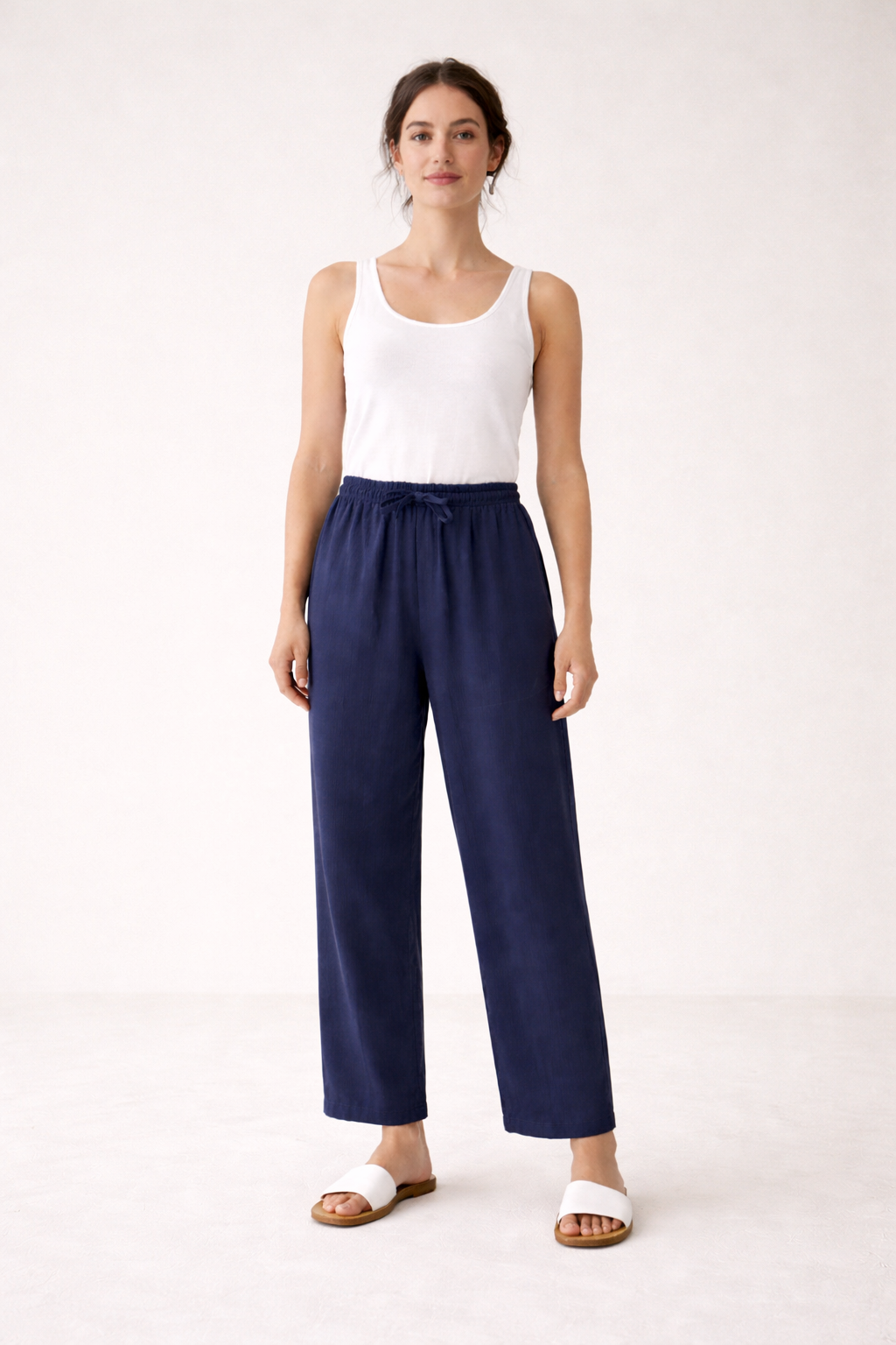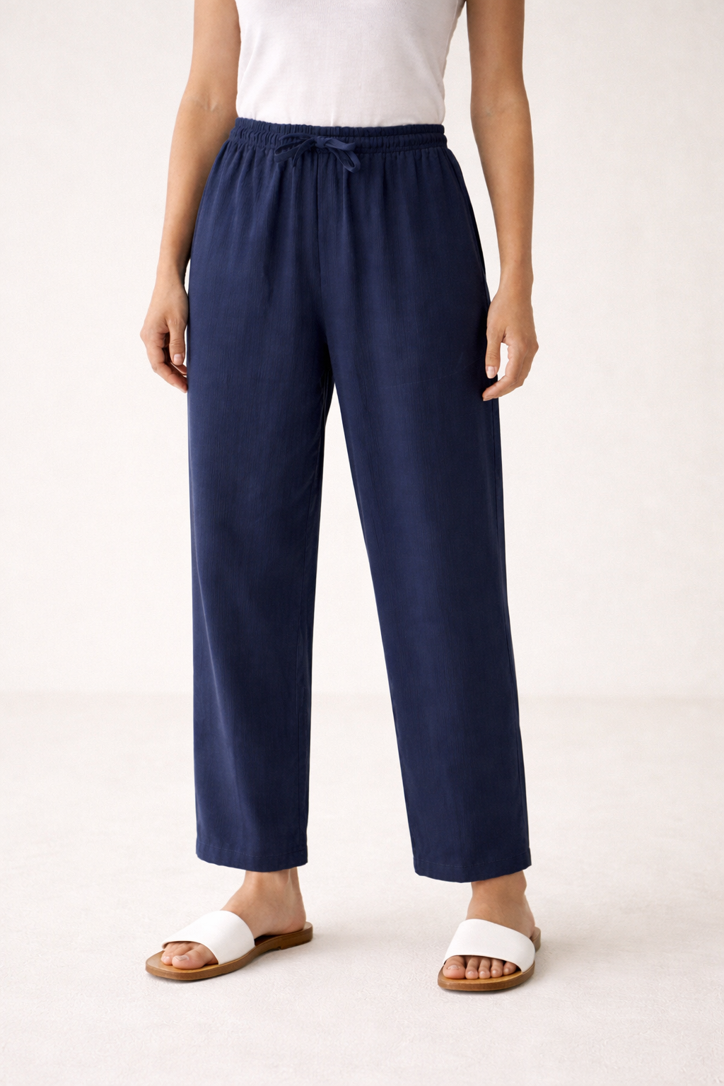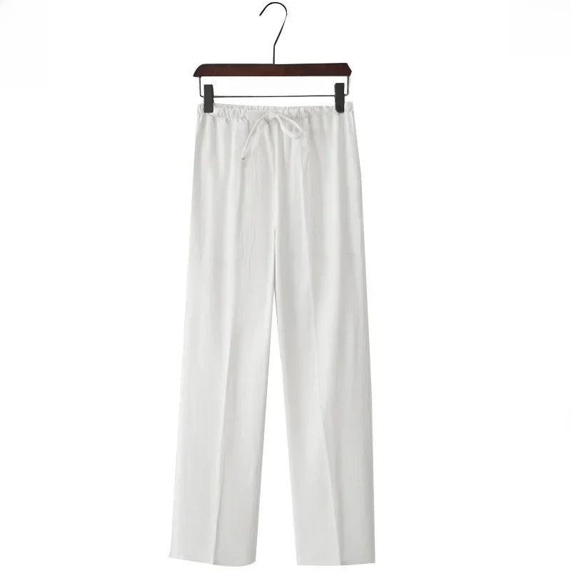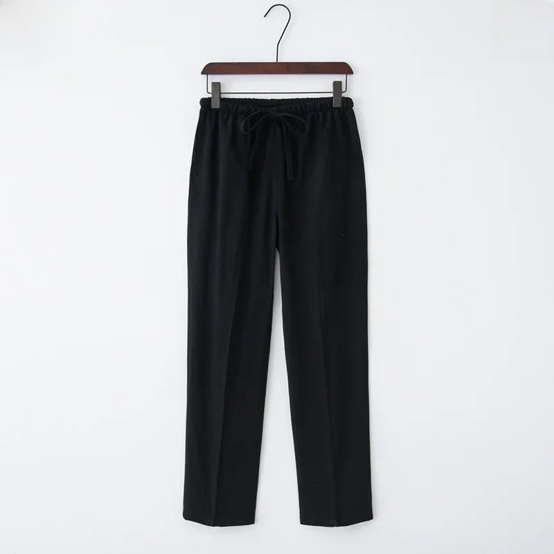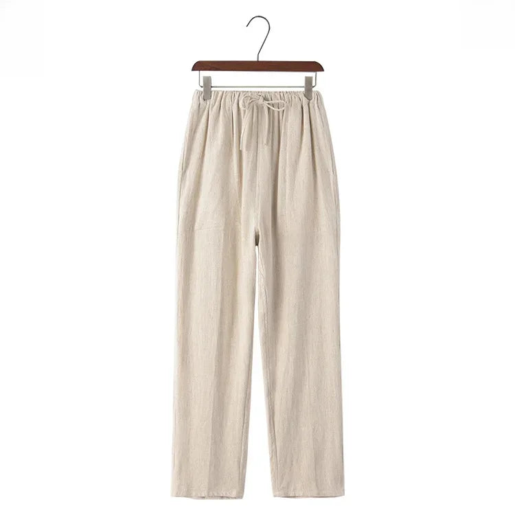Weite Leinenhose mit elastischem Bund und Kordelzug für Damen - Nerea