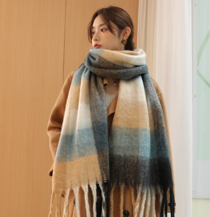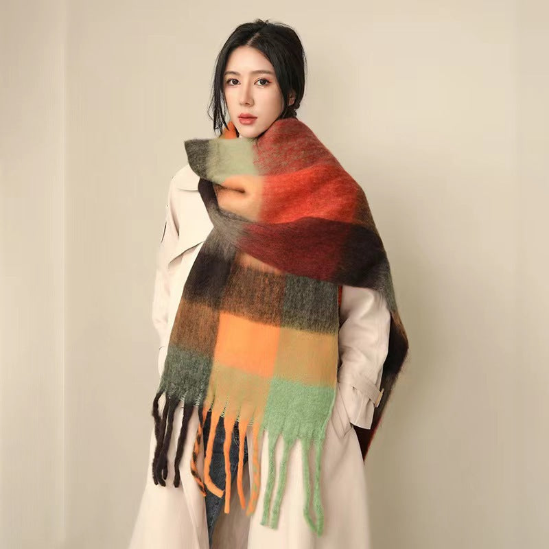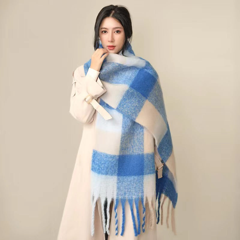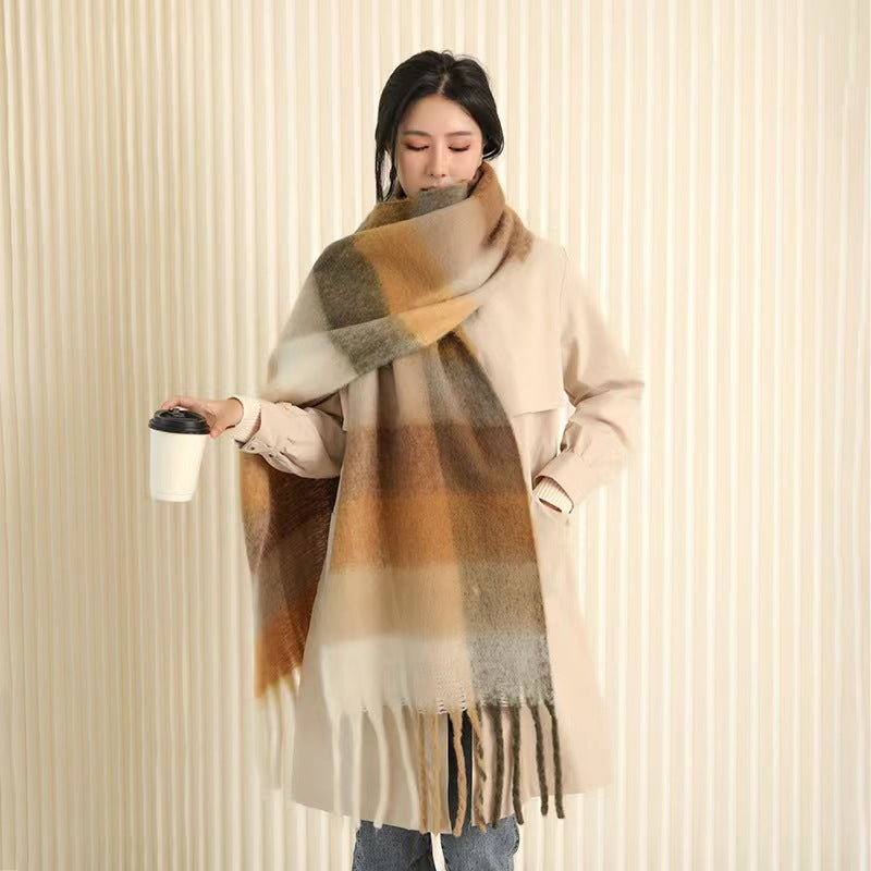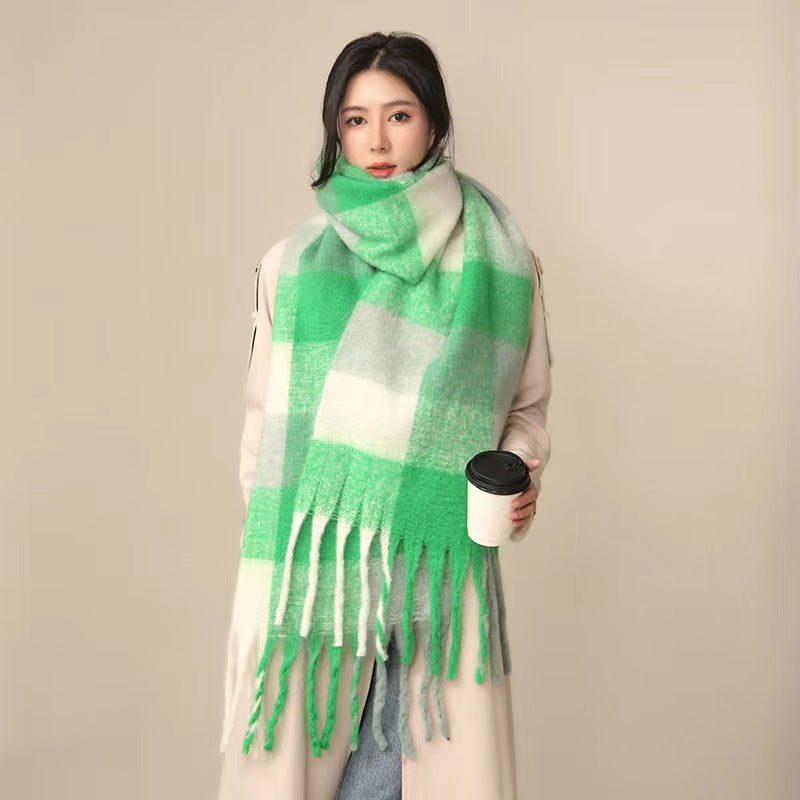 Das Plüsch-Finish sorgt für weiches Volumen und eine gleichmäßige Textur, die Bewegungen mitmacht, ohne steif zu wirken. Die Fransen an den Enden sorgen für eine stabile Proportion und verstärken den entspannten Charakter des Stücks, das für den häufigen Gebrauch im urbanen und saisonalen Styling gedacht ist.