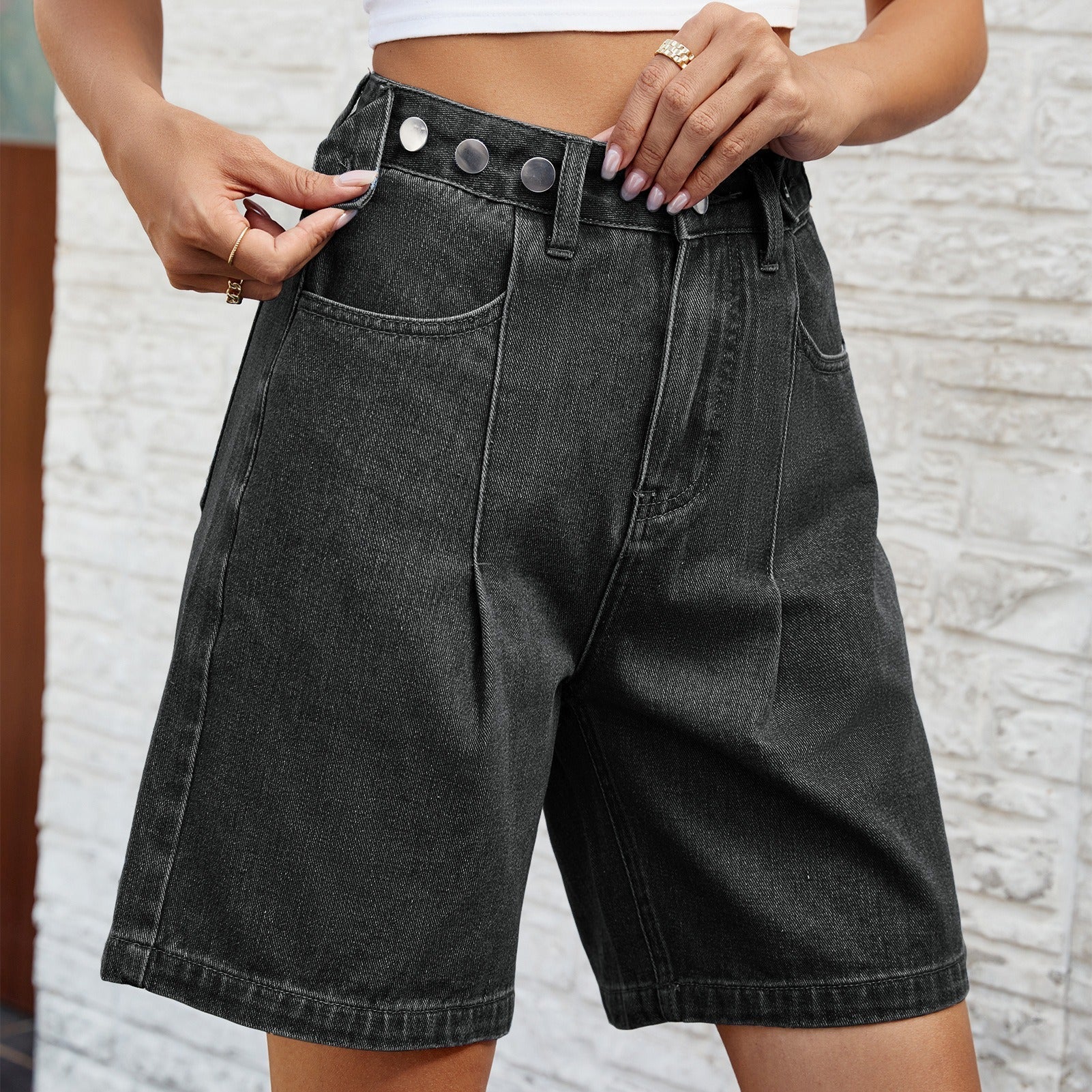Diese Bermudashorts mit hoher Taille und geradem Bein sind aus weichem, strapazierfähigem Denim gefertigt und bieten eine schmeichelhafte Silhouette, die der Figur schmeichelt, ohne auf Komfort zu verzichten. Die knielange Länge und das locker sitzende Design sorgen für Bewegungsfreiheit, ideal für warme Tage, lässige Spaziergänge oder legere Looks mit einem Y2K-Twist.