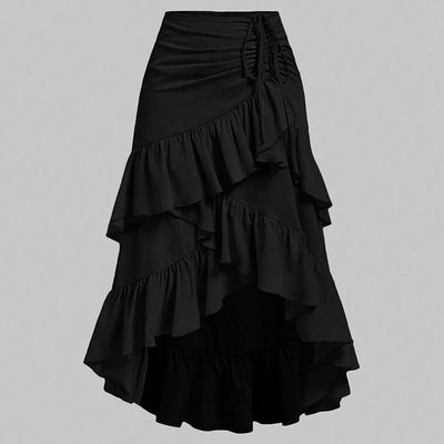 Damen Midirock mit asymmetrischen Rüschen und Seitenrüschen mit unregelmäßigem Schnitt - Nadège