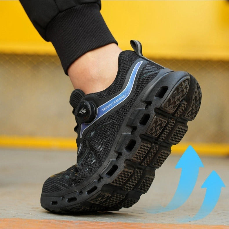 Die verstärkte Stahlkappe und die durchtrittsichere Sohle sorgen für einen wirksamen Schutz, ohne den Komfort zu beeinträchtigen. Das Schnellverstellsystem mit Drehrad ermöglicht eine sichere, individuelle Passform in Sekundenschnelle, ideal für intensive Arbeit oder Aktivitäten im Freien.