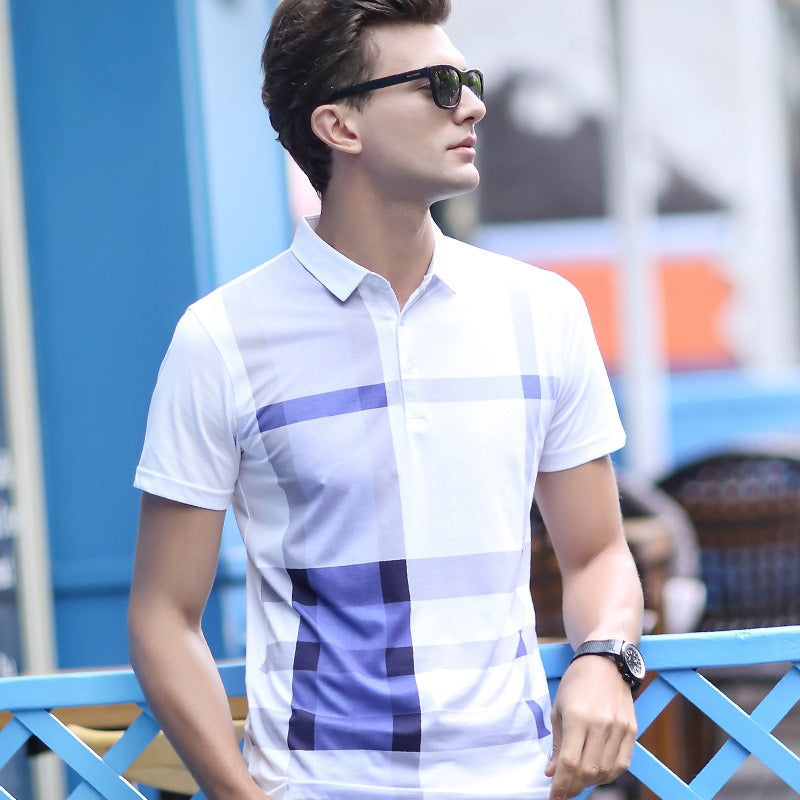 Zeigen Sie Stil und Selbstvertrauen mit einem Design, das Eleganz und Charakter in sich vereint. Dieses kurzärmelige Herren-Poloshirt kombiniert die Kühle von merzerisierter Baumwolle mit einem modernen Karomuster für einen dynamischen und doch dezenten Look.