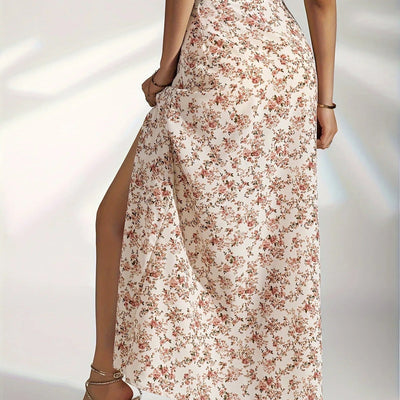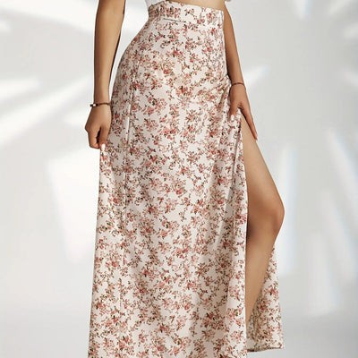 Langer Damenrock mit Blumenmuster und Seitenschlitz - Natalia
