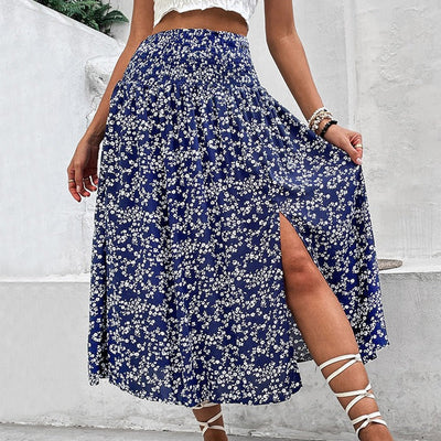 Ein Stück, das bei jeder Bewegung Frische und Freiheit ausstrahlt. Dieser Midirock für Damen kombiniert einen zarten Blumendruck mit einem elastischen Bund und einem dezenten Seitenschlitz, der die Figur verschlankt, ohne den Komfort zu beeinträchtigen.